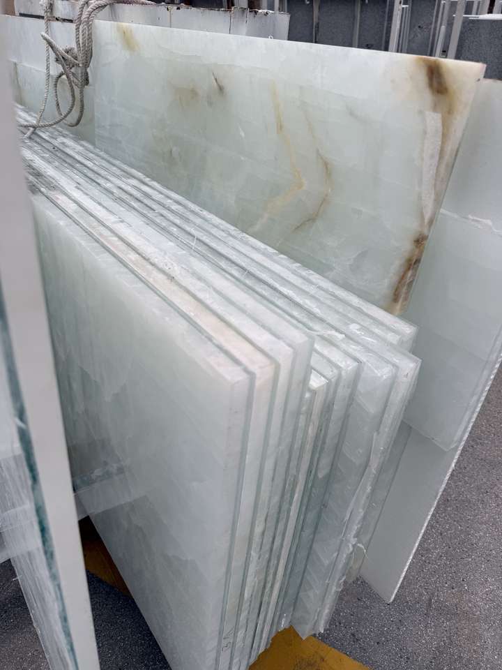 2. 精密复合: 在特定复合加工环境下,通过特殊工艺将石材薄片与玻璃牢固结合,形成一体化的复合板材。